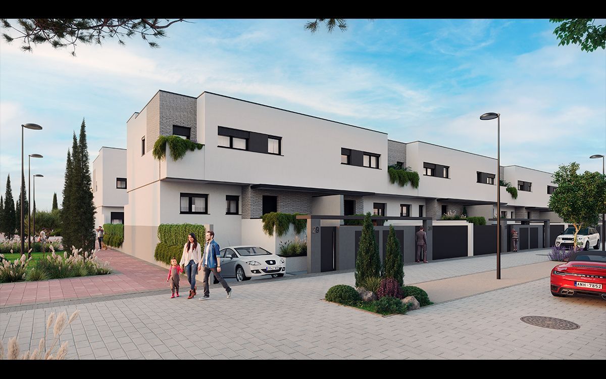 Un exclusivo desarrollo residencial de 14 viviendas unifamiliares, diseñadas con amplios espacios abiertos y funcionales interiores, situado en el Barrio de Los Molinos en Getafe.