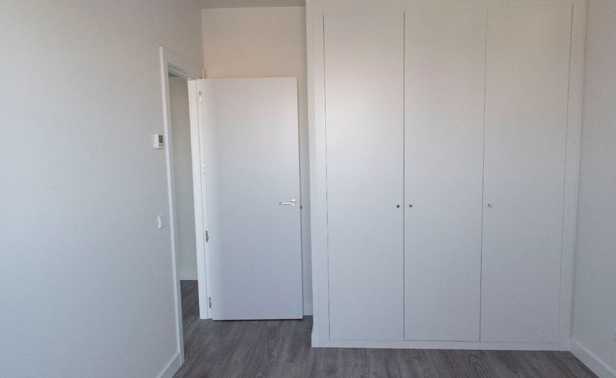 Carpintería interior en madera lacada en color blanco y rodapié del mismo color.