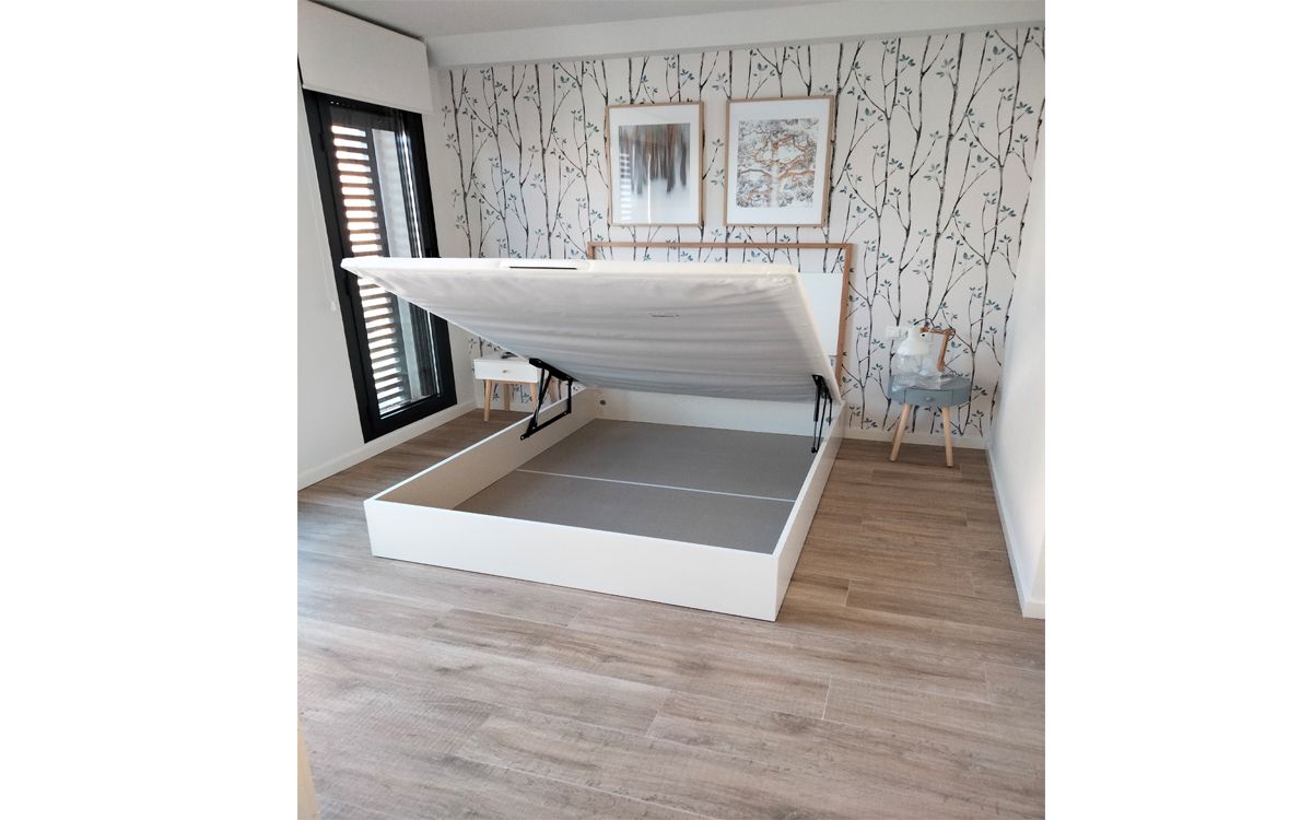 Suelos en toda la vivienda de 1ª calidad imitación madera, con rodapié blanco haciendo juego con las puertas